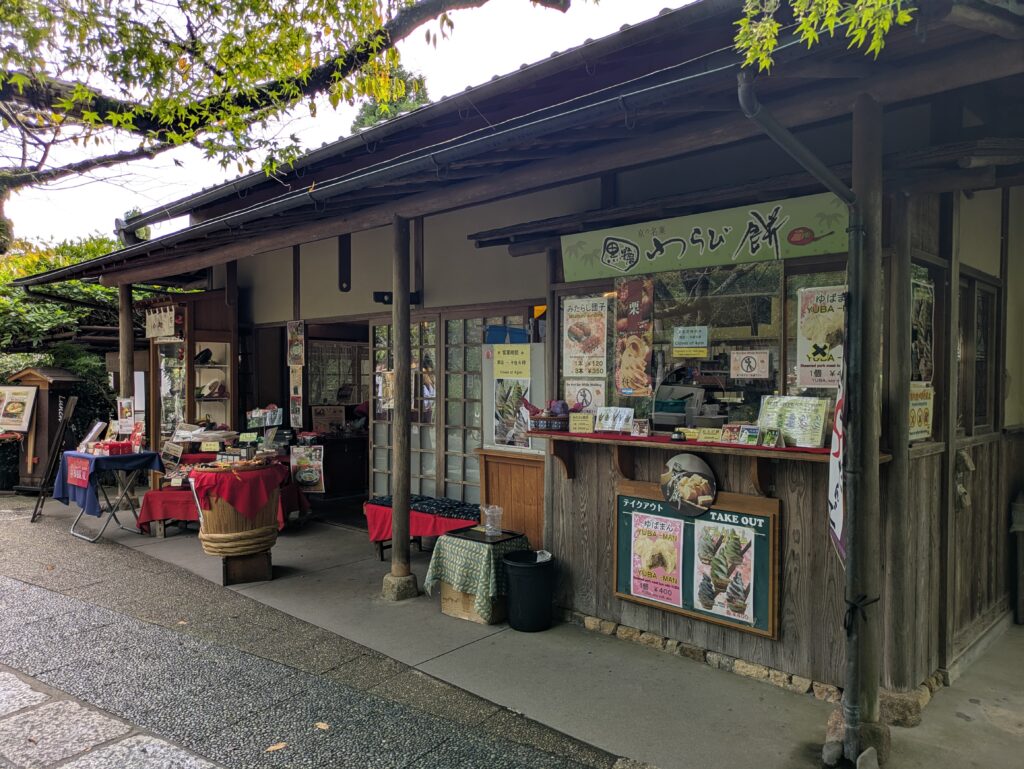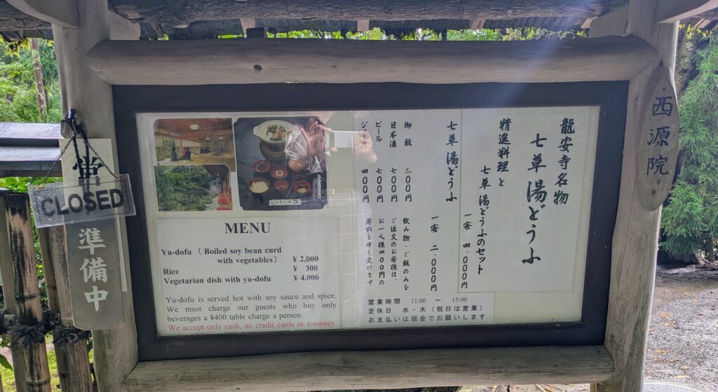 Whithin Ryoan-ji, there are several places to stop by: Kyoto’s specialty yudofu (tofu hot pot) at Seigen-in, a casual rice restaurant Nanohana, and small tea houses. At the temple entrance, you can also find souvenir shops and a specialty store for Kyoto pickles, making it easy to drop by during your visit.